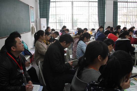 “1513”课堂评价标准要求课堂体现新课改精神,着重以学生自主探究、小组合作学习为主要模式。课程评价重点放在了学生的学习方式、学情反馈上。研究课结束后,听课教师和上课教师共同评课、议课,对“1513”评价标准结合二中“三课型三环节”进行了专题研究。