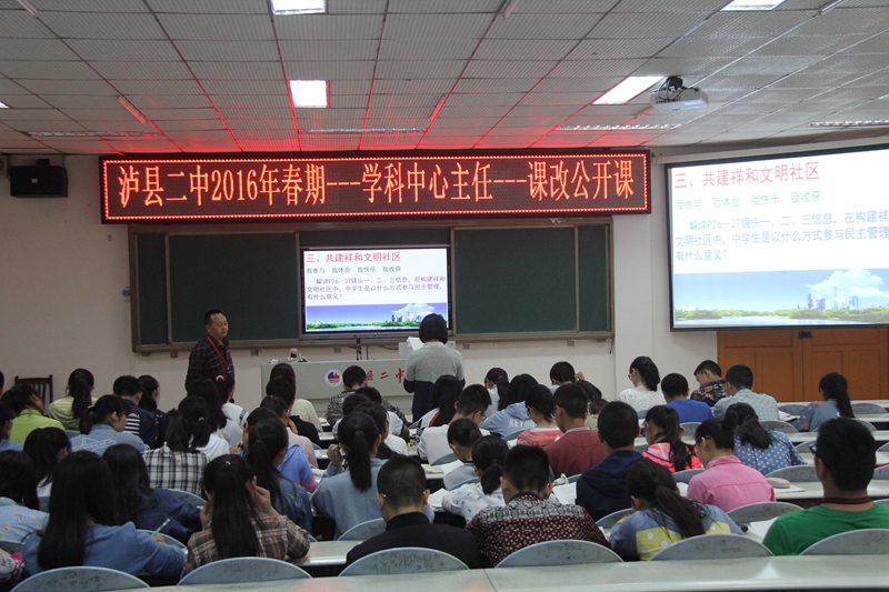 课堂决胜,决胜课堂。泸县二中积极推进课程改革,把握新高考改革方向,探索“1513”高效课堂模式,实施“课堂”、“课程”、“课管”的“大课改”行动。德育教育、心理教育、国防教育等校本课程独具特色;大阅读、模拟法庭、成人仪式、远足德育等活动,把课堂教育与学生理想前途、生涯规划、社会实践等教育结合起来。让学生成为课改的主人,活动的主人,创造的主人,成长的主人。