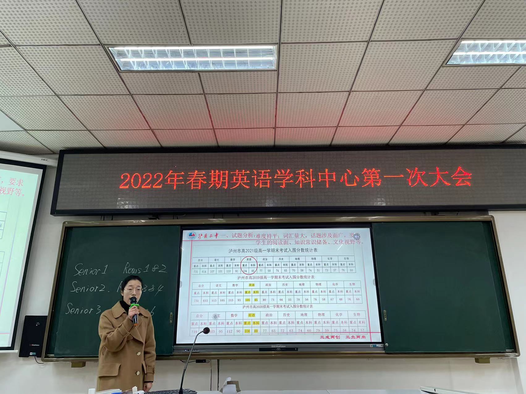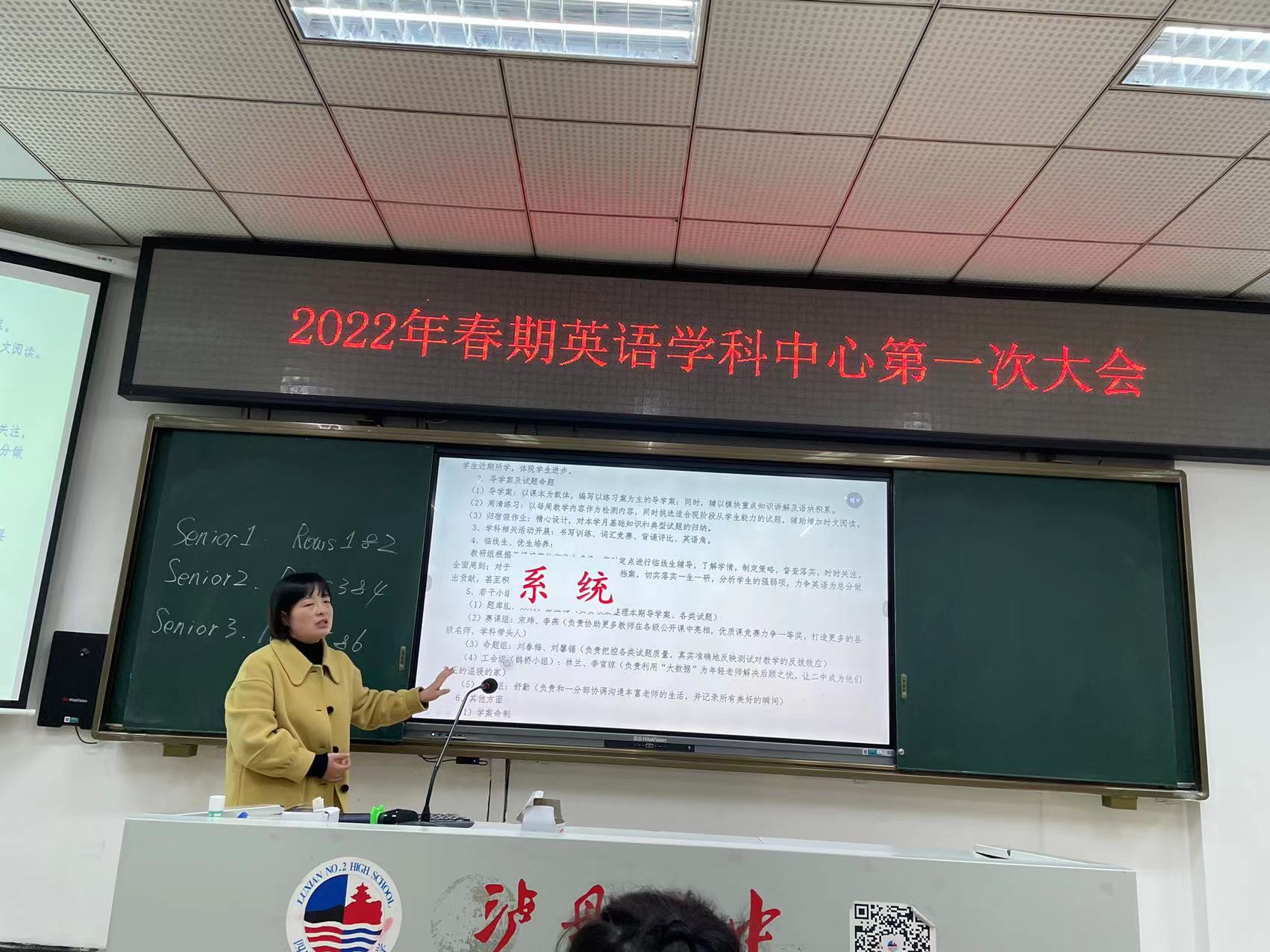 2022年2月25日下午,泸县二中英语学科中心第一次大会在兰惠苑阶梯教室如期展开,会议全面回顾总结了2021年秋期英语学科教学工作,安排部署2022年春期英语学科重点任务。学科中心主任刘春梅老师主持会议;2022届,2023届,2024届50余名英语教师参会。
