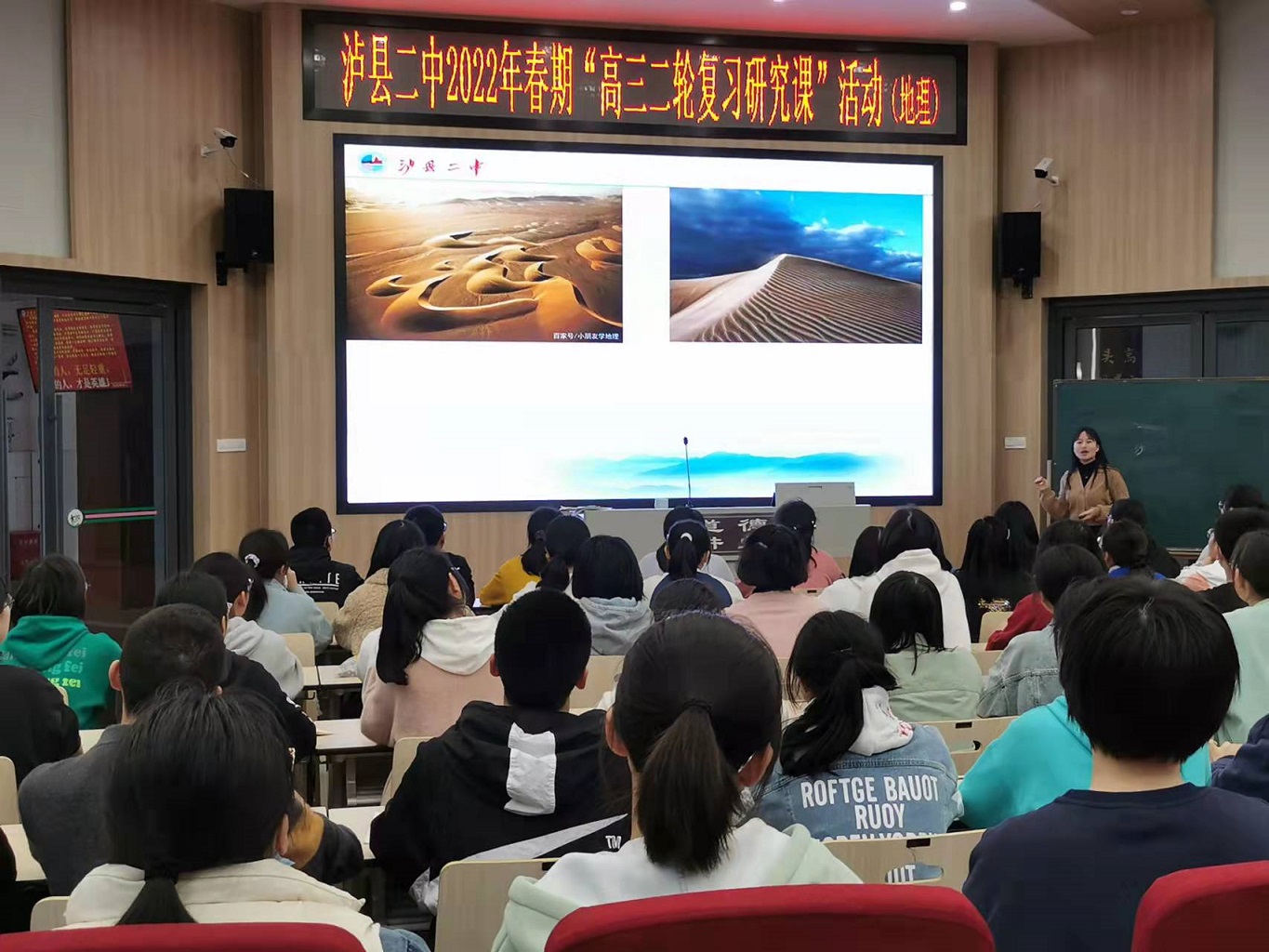 3月22日上午,泸县二中地理中心组在六艺楼学术报告厅开展高三二轮复习研究课,由苟向莲、唐秀英两位老师分别献课《沙之说》、《话“桥”》,带领学生在沙和桥的世界养成地理学科素养,提升地理解题能力,感受地理的美和趣。