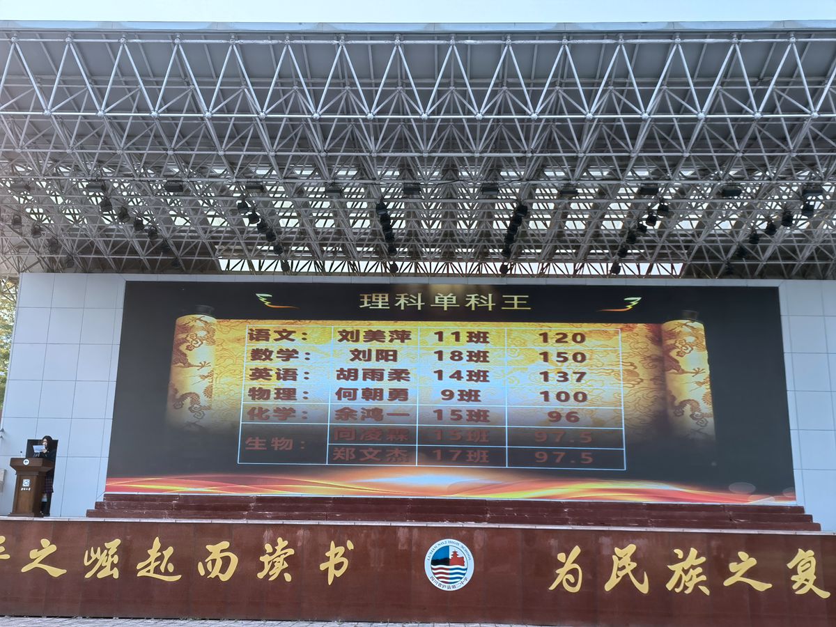大会的第三项议程是对在第一学月考试中表现优秀的同学进行表彰。