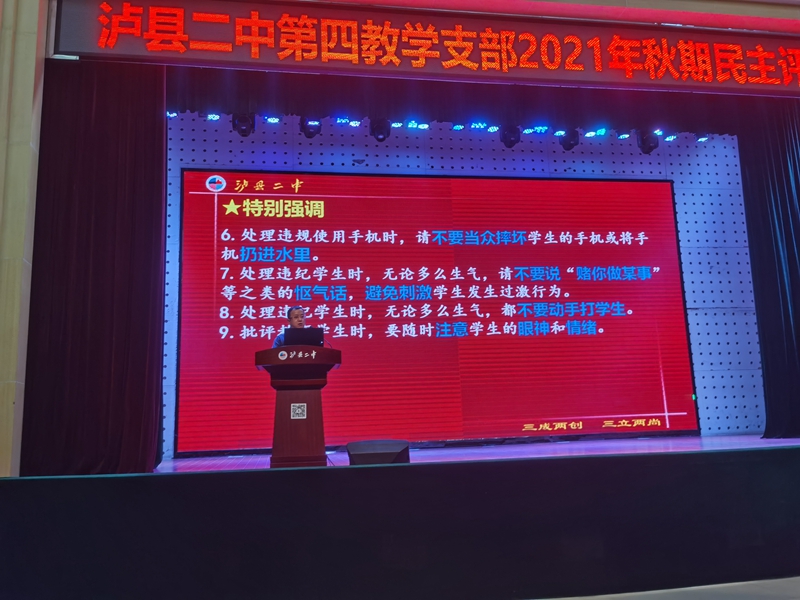 泸县二中2021年秋期第四教学支部秋期民主评议会顺利召开
