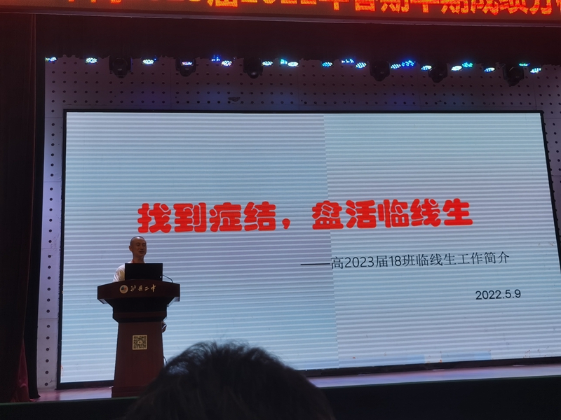 2022年5月9日晚上7点,高2023届召开2022年春期半期考试成绩分析会,年级领导凡建军、年级主任王铧等人和2023届全体教师参与了本次会议。