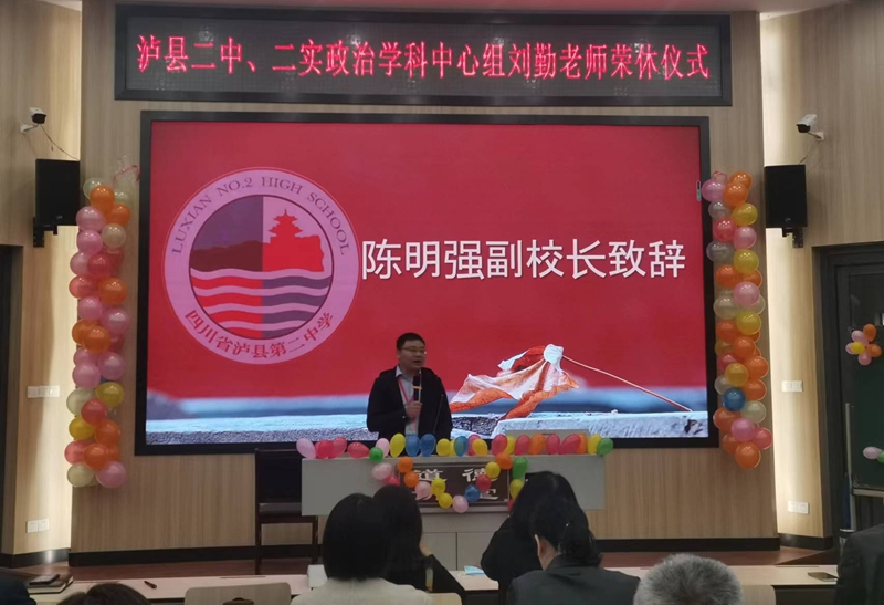 典礼第三项,泸县二中副校长陈明强致辞。陈校长对刘勤老师三十年如一日的无私奉献给予了充分的肯定,感谢她为二中的