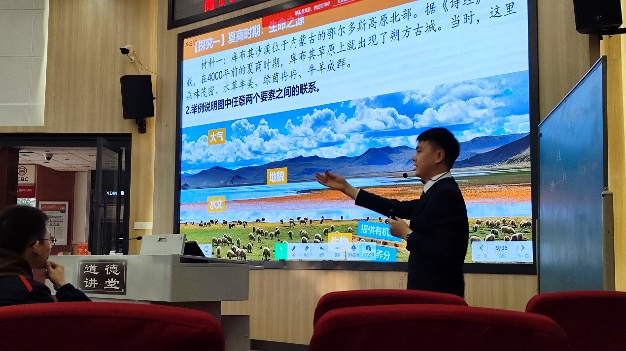 由泸县二中高二地理教师郭政乾老师对人教版第五章第二节《自然环境的地域性差异》进行课例展示,郭老师以库布齐沙漠的前世新生为情境贯穿整课讲解整体性,通过时代的变迁设置层层递进的问题链,侧重学生思维过程的自主生成,课堂氛围良好。让学生在实际案例中理解并应用所学地理知识,体现出对地理核心素养的深刻理解。