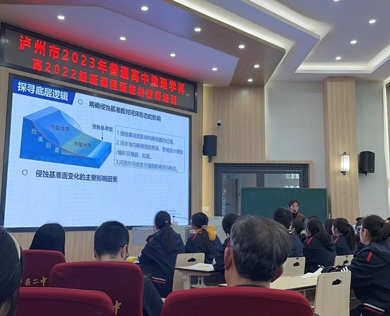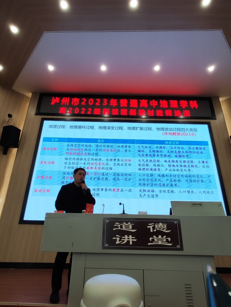 为准确把握新课程标准,适应新高考背景下的教育教学改革发展趋势,强化对新教材的理解和运用,提高课堂教学的针对性、实效性。11月27和28日,泸州市高一高二地理“新课程、新教材”专题培训活动在我校举行。泸州市教研员陈大茂老师及我县地理教研员和全市高一高二年级地理教师共同参与了本次活动。